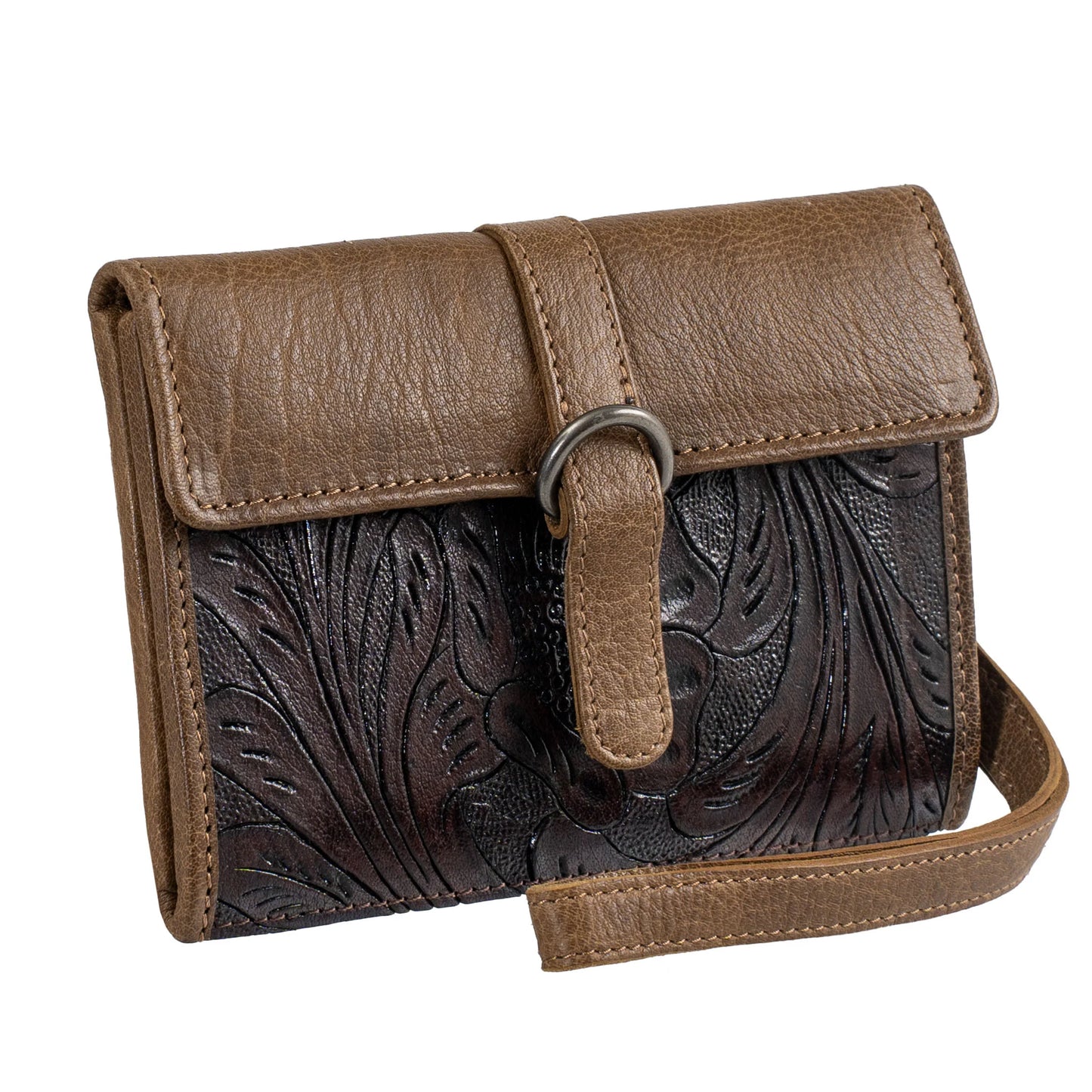 Embrace the Boho Cowgirl aesthetic, where rustic meets contemporary in the form of buffalo leather. The natural beauty of the leather is preserved through a unique dye process, showcasing the original grain. Fringe and tooled leather details add a touch of softness to this collection.