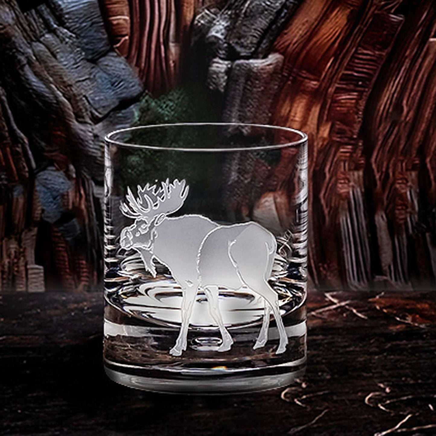 Alaskan Wildlife Etched Crystal Rocks Glasses, Set of 4